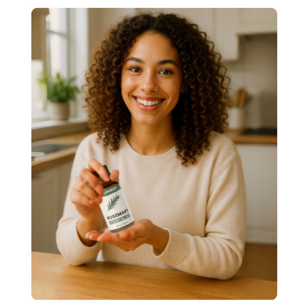 Fijne olie. Mijn haar voelt sterker en mijn hoofdhuid is rustiger. Ook ideaal voor in de diffuser – geeft een verfrissende geur in huis.