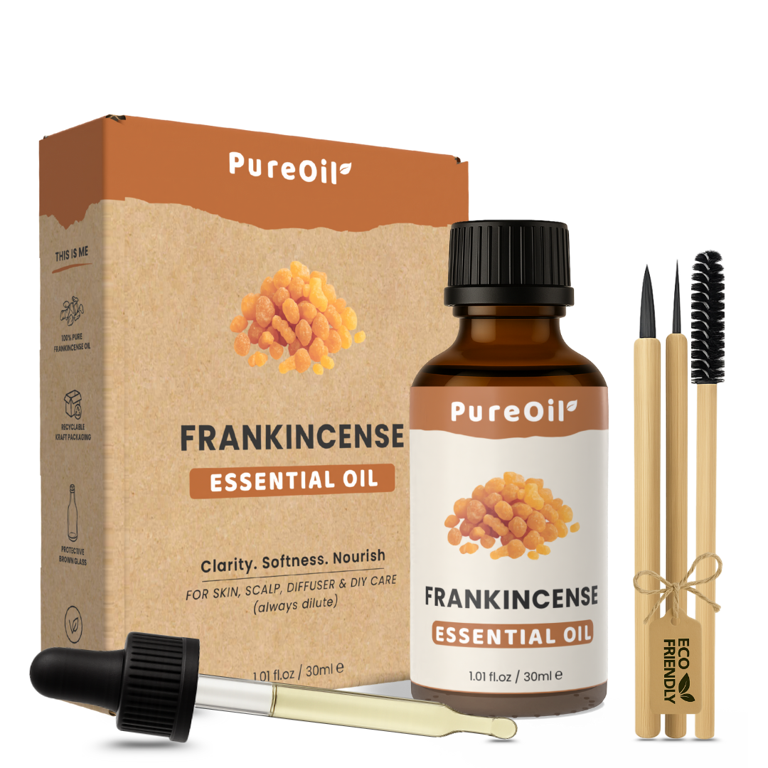 Frankincense olie staat bekend om haar herstellende en verjongende werking. Ze helpt bij het verminderen van fijne lijntjes, verzacht een droge of geïrriteerde huid en ondersteunt een egale teint.
