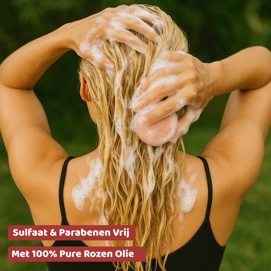 Ontdek de verzachtende kracht van onze rose shampoo bar – een natuurlijke shampoo verrijkt met pure rozenolie. Roos staat bekend om haar kalmerende en verzorgende eigenschappen, die de hoofdhuid in balans brengen en het haar zacht en glanzend maken. Deze shampoo bar reinigt het haar op milde wijze, geeft een luxueus en fris gevoel en laat het haar soepel, vol en stralend achter. De delicate, bloemige geur van roos zorgt voor een moment van ontspanning en welzijn bij elke wasbeurt. Inclusief gratis opbergbakje voor optimale bewaring.