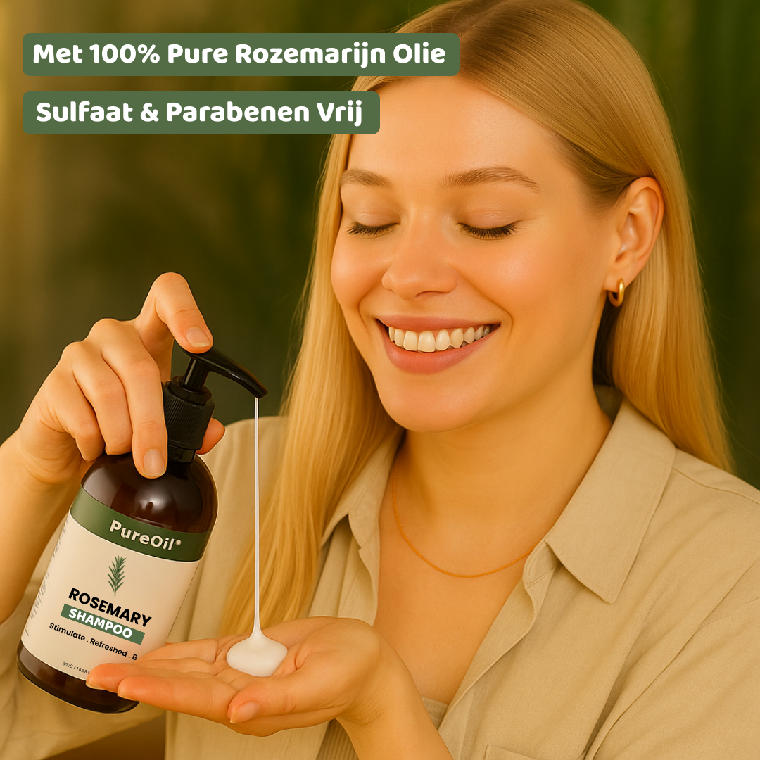 2. Breng een kleine hoeveelheid Rozemarijn Shampoo aan in je handpalmen.