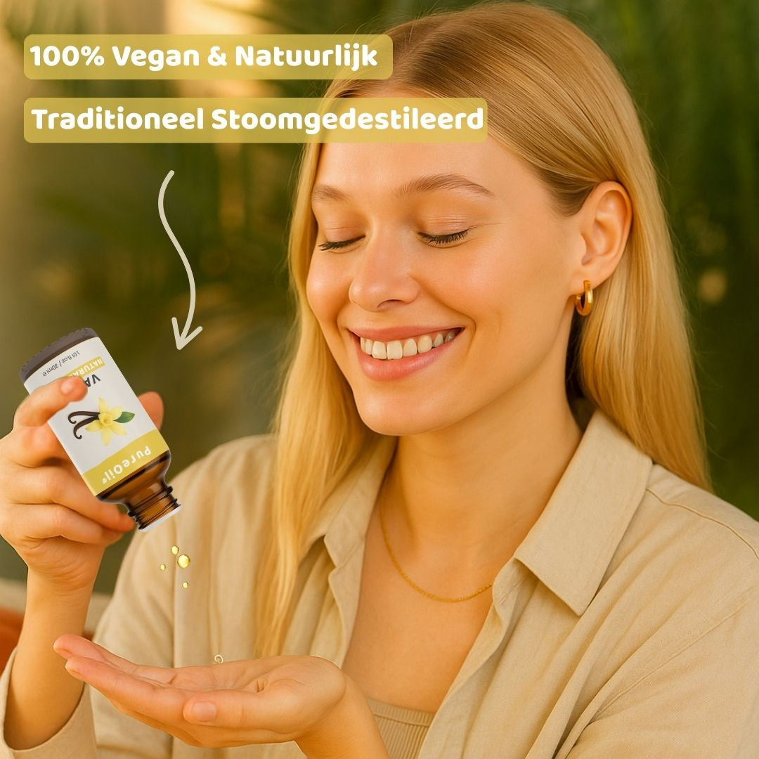 Let op: Etherische vanille olie altijd verdunnen met een draagolie (zoals jojoba-, castor- of kokosolie) voor gebruik op huid, haar of nagels.